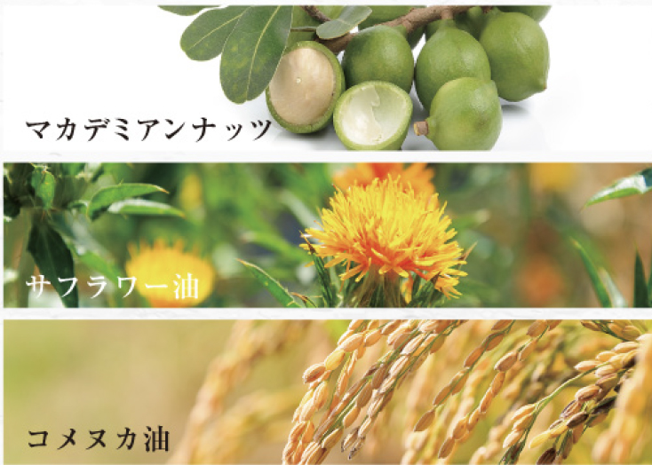 マカダミアナッツ油はヒト皮脂中存在するパルミトレイン酸を豊富に含み髪を豊かに潤します